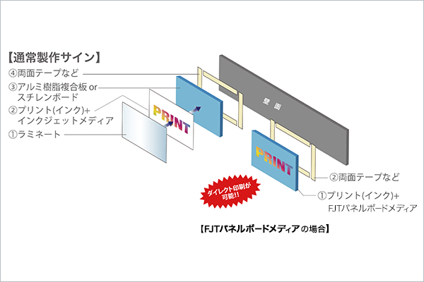 パネルボードメディアはメディアに直接印刷するだけで看板づくりが可能です。